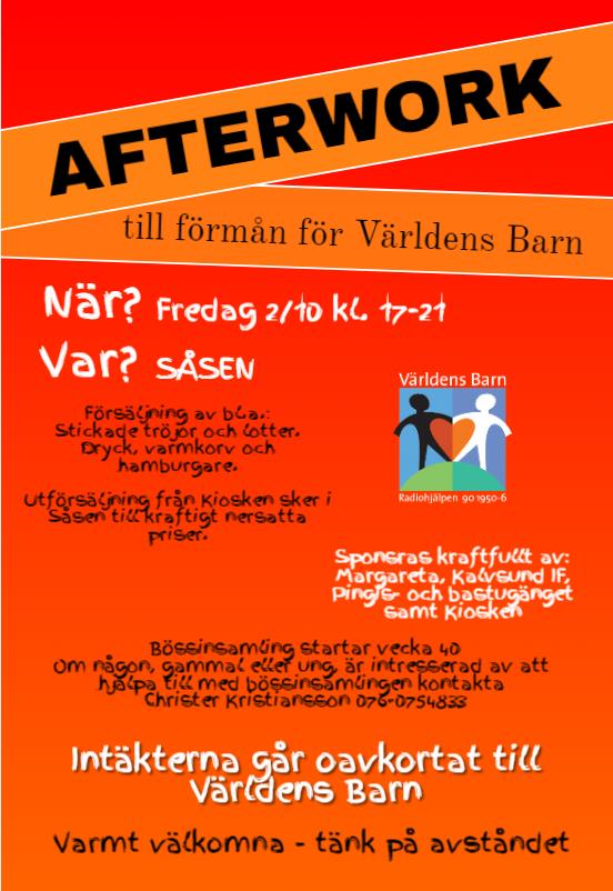 Afterwork 2/10-20 till förmån för Världens Barn