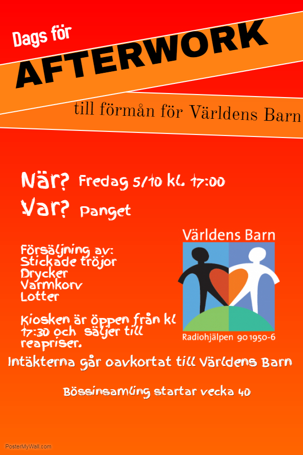 01 OKT Afterwork till förmån för Världens Barn 5/10 -2018 Upptäck mer från Kalvsund Prenumerera för att få de senaste inläggen skickade till din e-post. Skriv din e-post … Prenumerera Inläggsförfattare: Markus H