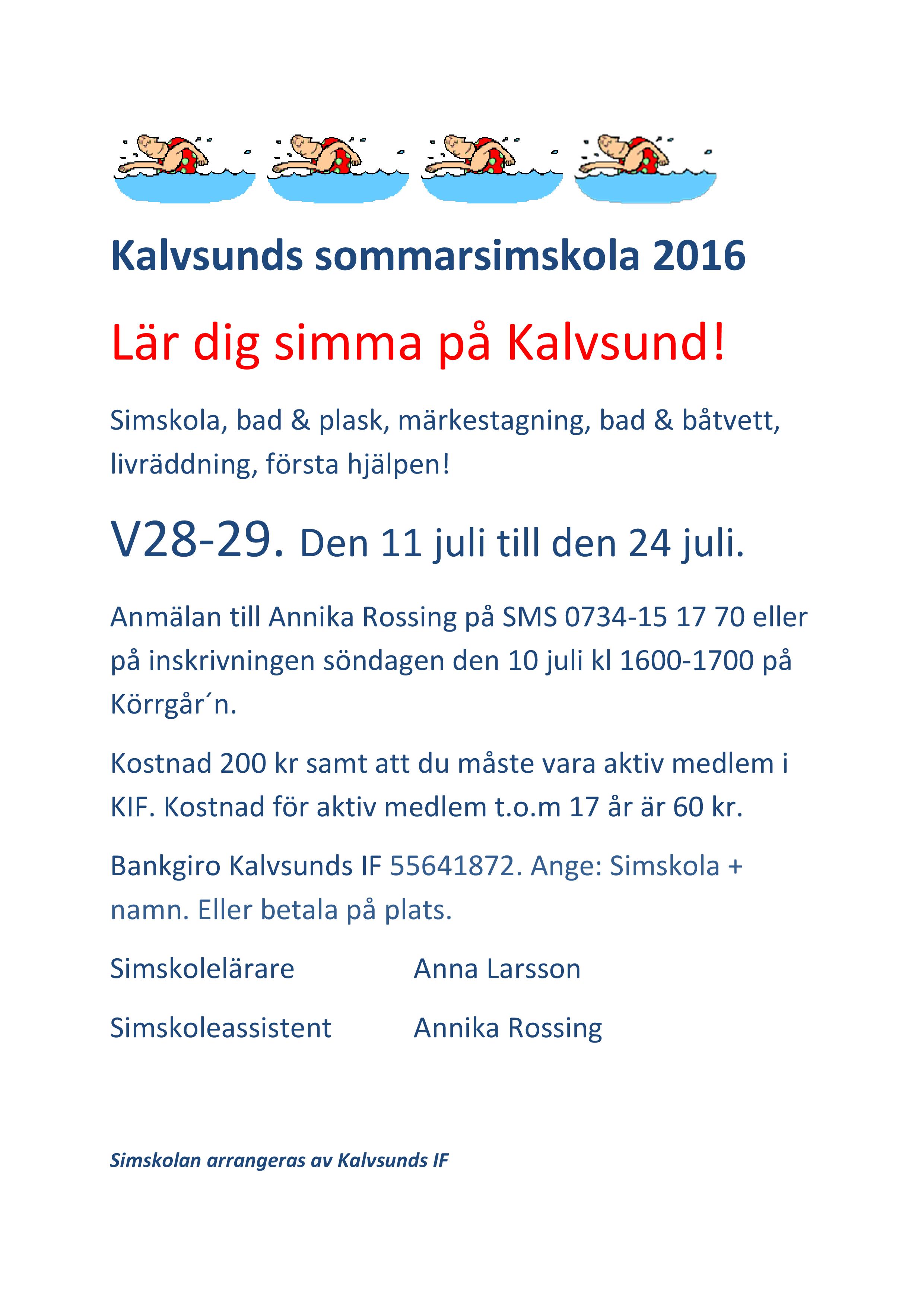 Kalvsunds sommarsimskola 2016
